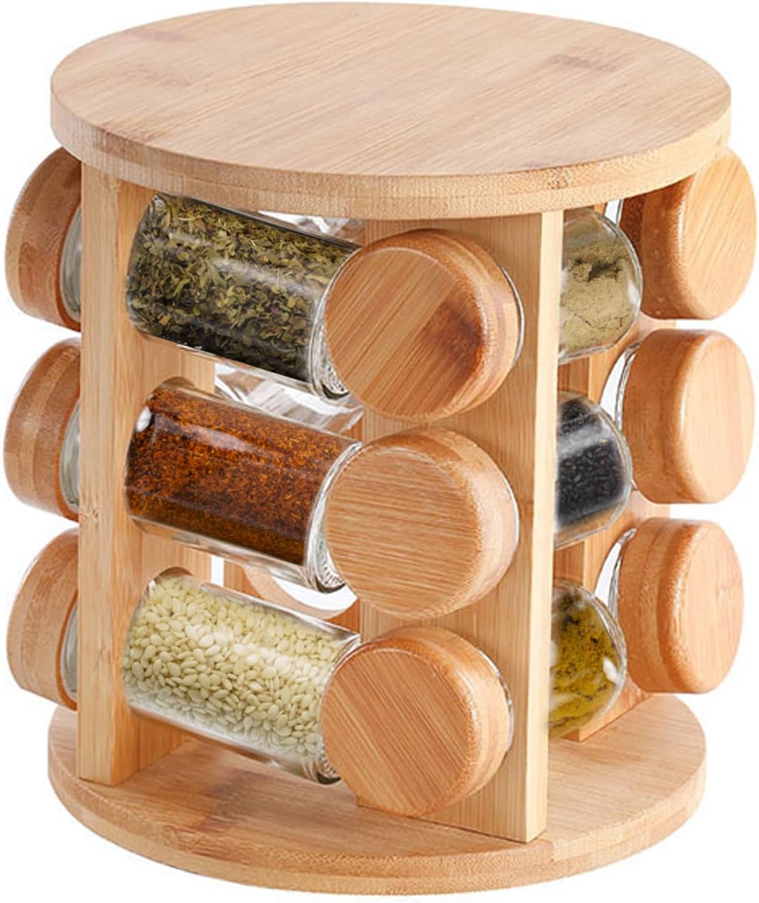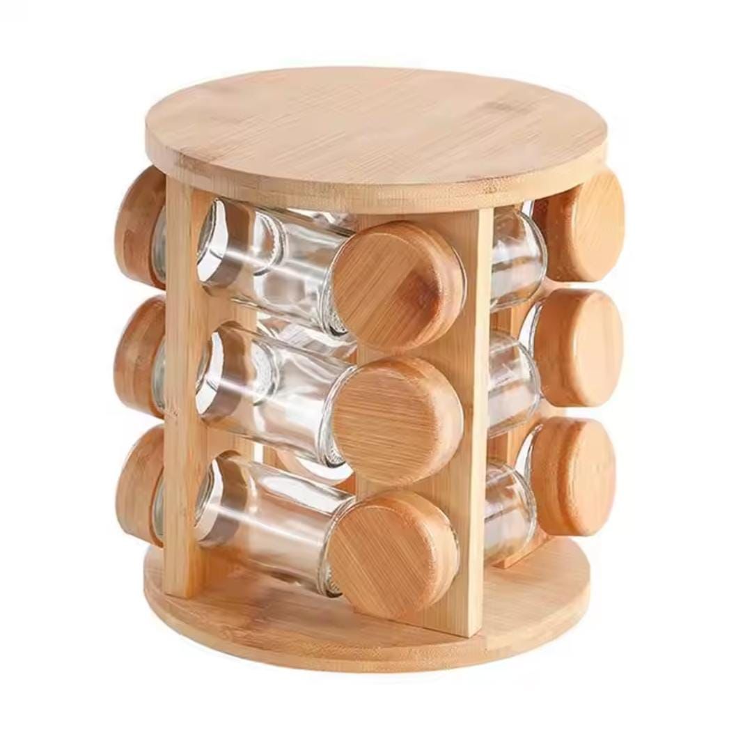 12 Jar Revolving Spice Rack Bamboo Rotating Standing Seasoning Rack Shelf Round Shape