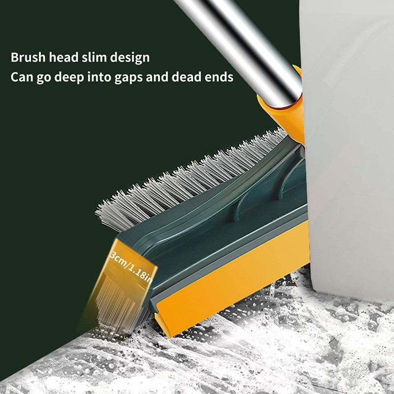 - 120° rotating brush head: 3-in-1 floor brush with V-shaped triangular hard bristles. The brush head can be rotated 120 degrees and reaches the dead corners. Adjust multiple angles to effectively clean dead corners, long handle scrub brush, clean the corners of bathroom tiles, the edge of the toilet, etc. The hard bristle brush rotates 120 degrees on the swivel joint, providing you the best angle for all deep cleaning jobs .