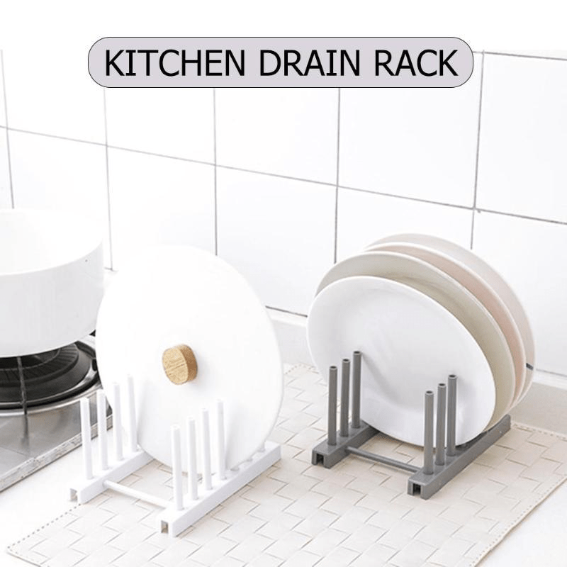 Kitchen Flat Plate Pot Cover Drying Drain Holder Plastic Storage Rack
